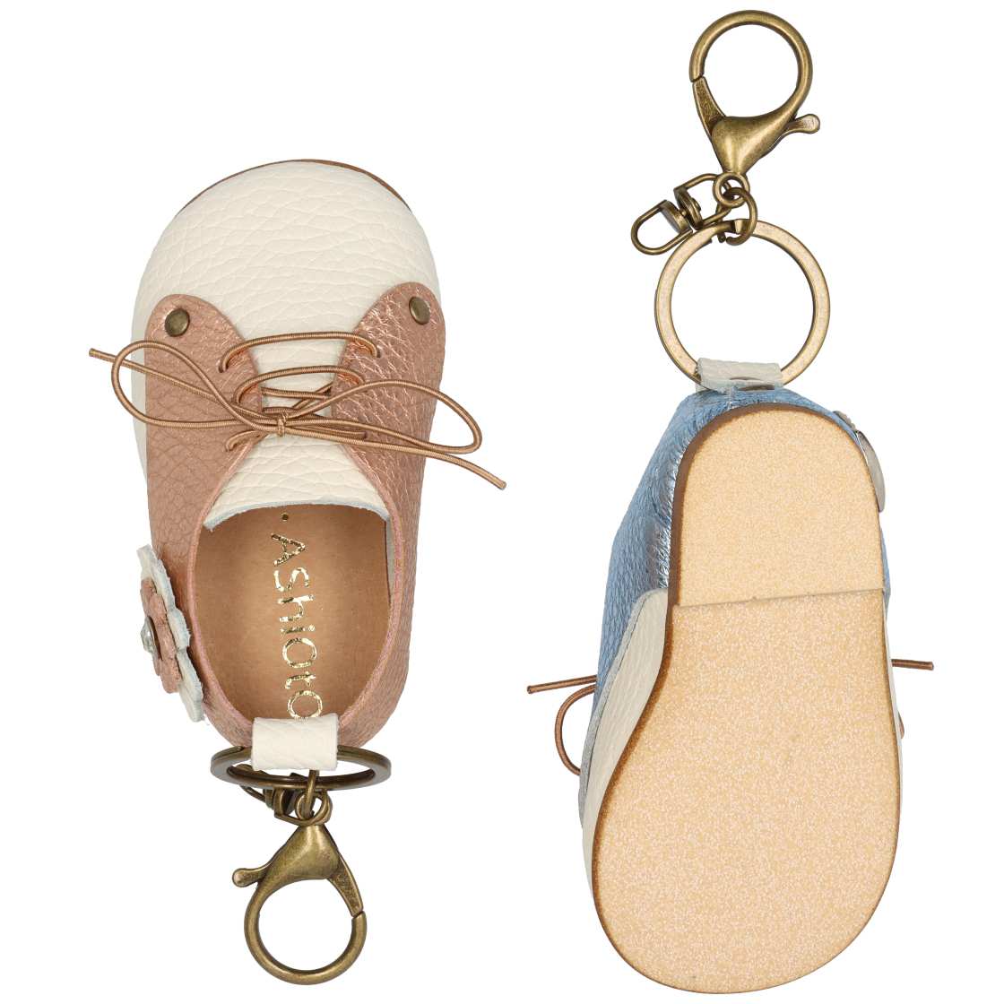 思い出のファーストシューズをキーホルダーとして身につけることができます。将来お子様が大きくなった際、この靴をプレゼントすると素敵な思い出となるはずです。赤ちゃんの足に負担がないよう、幼児専門のシューフィッターが考案しました。