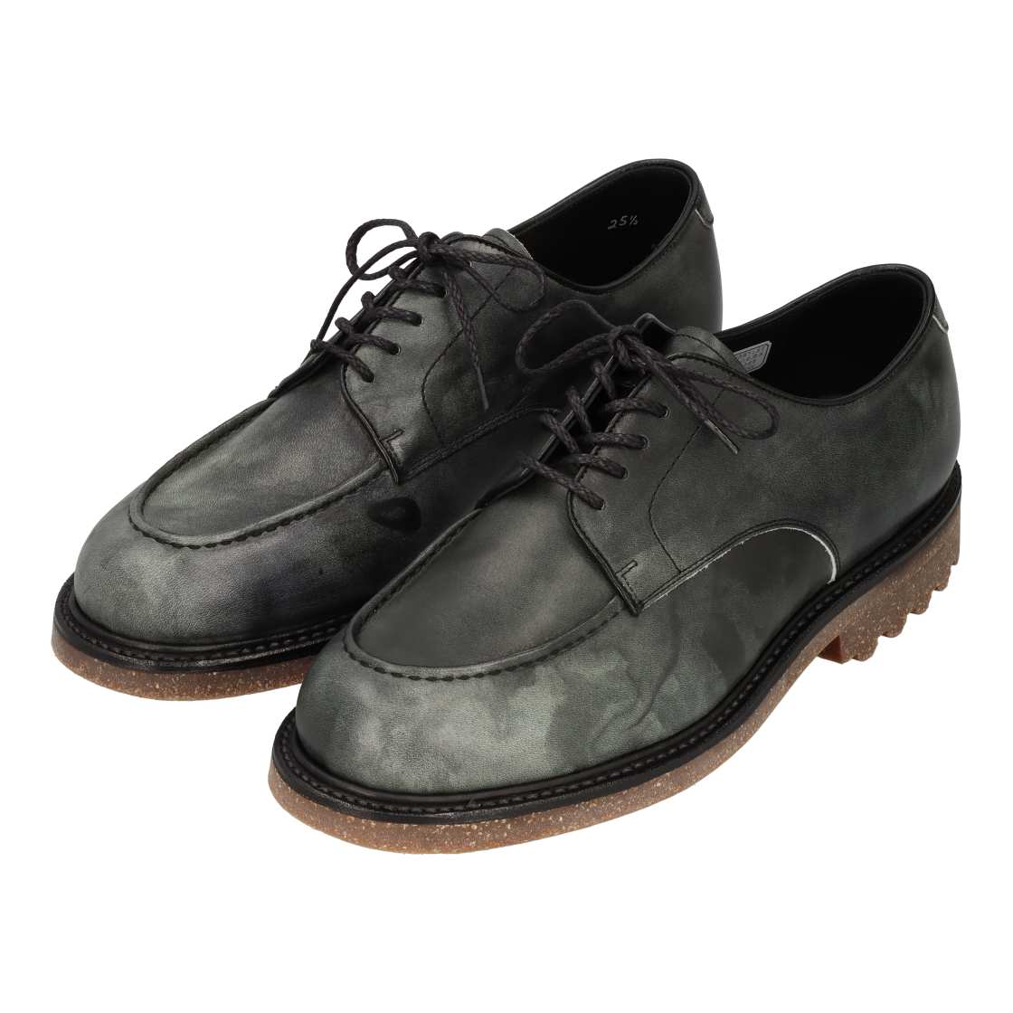 これは単なる履物ではなく、自己表現のキャンバスとしてデザインをしました。白鞣しを施した無垢な素地に、手作業で水墨の流れを革に表現。